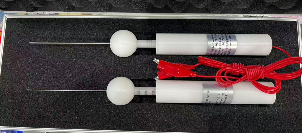 For the dust-proof probes, PEGO provide PG-TPA test probe A for IP1X testing, PG-TPB test probe B for IP2X testing (jointed finger test probe), PG-TPC test probe C for IP3X testing, PG-TPD test probe D for IP4X testing, PG-TP2 12.5mm test sphere for IP20 testing and PG-IPX56 IP56X dustproof chamber.
